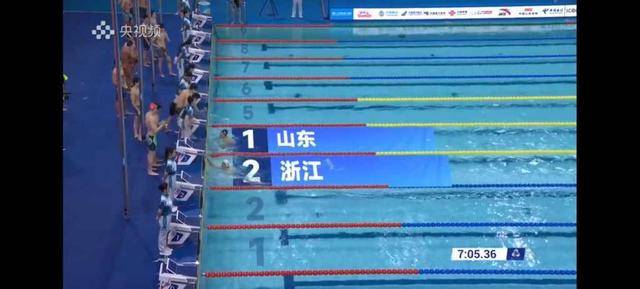 11月15日晚,全运会游泳项目当中,张展硕在最后一棒逆转汪顺,帮助山东队逆转浙江,获得男子4×200米自由泳接力金牌,成绩为7:05.36。 获得接力决赛的四...