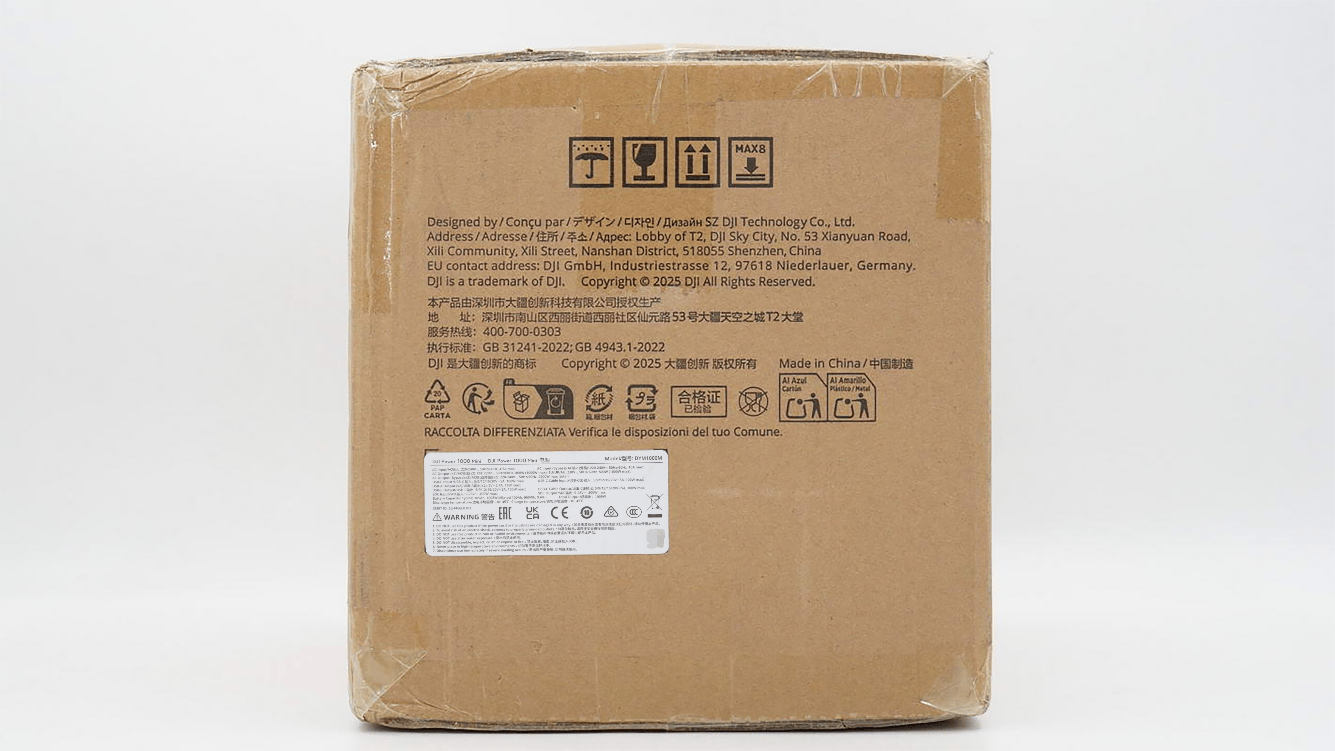 大疆创新DJI Power 1000 Mini户外电源采用瓦楞纸箱包装。