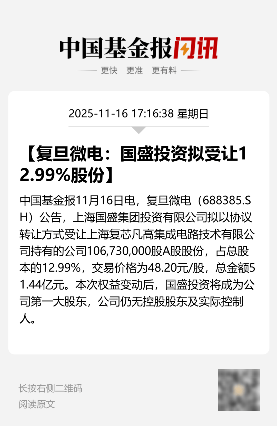【导读】复旦微电第一大股东拟变更为国盛投资